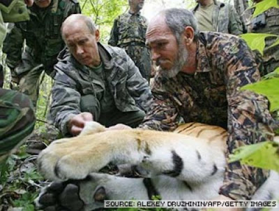 When former Russian President Vladimir Putin is not swimming in a very cold river, resting in the branches of a tree, hunting or doing any of all the other manly things he usually does, well, he apparently is just the animal lover.